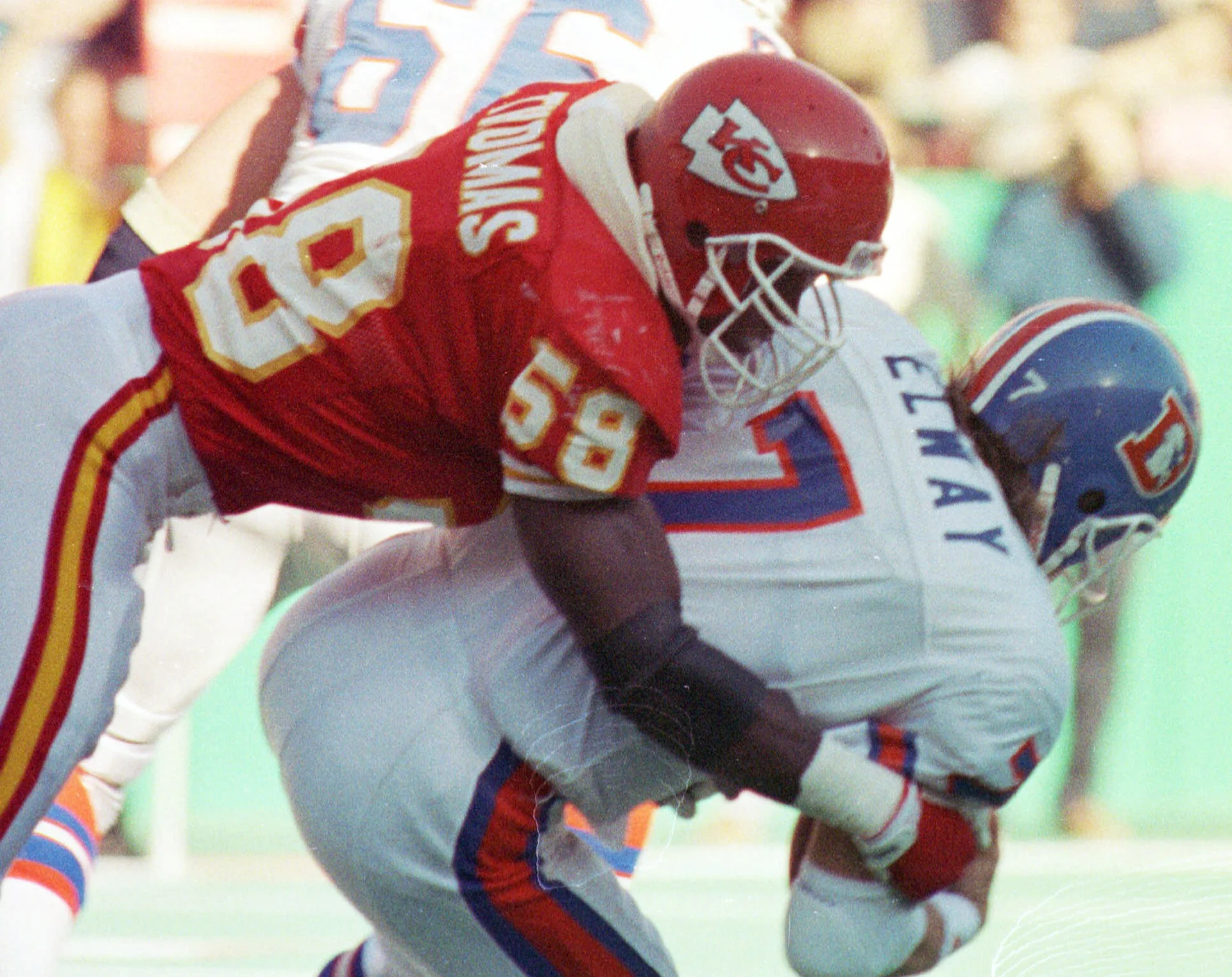 Selected fourth overall, Thomas became the first draft selection made by new Kansas City Chiefs General Manager Carl Peterson. Making an immediate impact, Thomas set the Chiefs’ rookie record for sacks with 10 in 1989 and earned his first of nine consecutive Pro Bowl nods.
